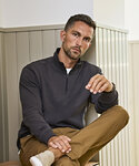 80% Ringspun combed cotton, 20% Polyester. Half-zip. SBS zip. Ribs with elastane. Herringbone neck tape. Double pre-shrunk. Silicone treatment.